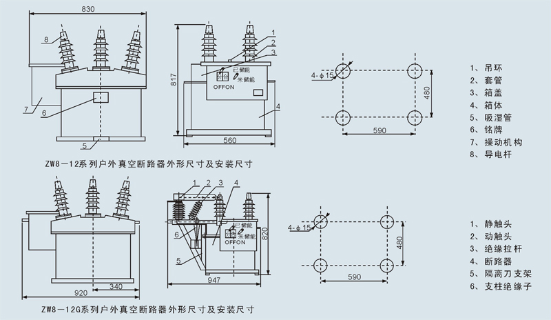 ZW8A-12是由ZW8-12斷路器與隔離刀組合而成的,稱為組合斷路器,可作為分段開關使用。