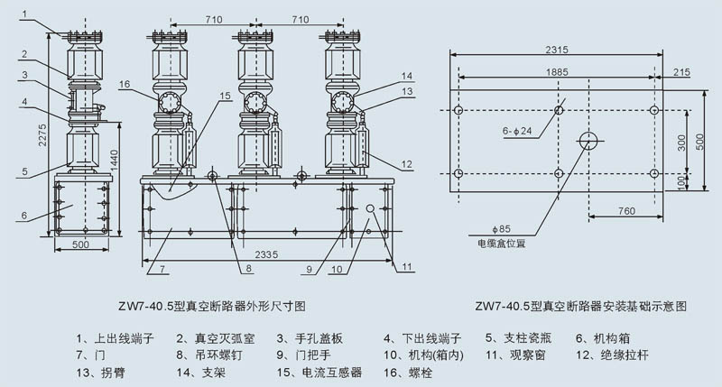 斷路器外形尺寸(長×高×寬) | mm | 2335×2275×500 | ||||||