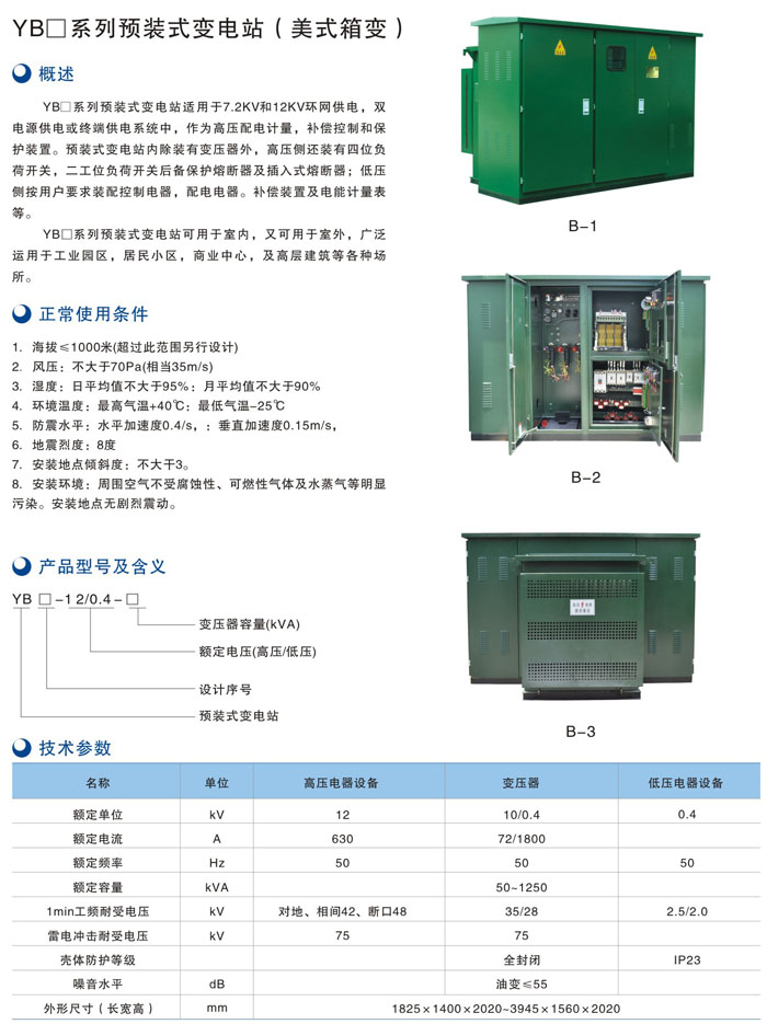 YB1系列預(yù)裝式變電站(美式箱變)